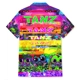 Shirt is fully printed, and is made of the usual "95% polyester, 5% spandex" Hawaiian material; please note that it does not have a breast pocket.