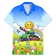 Shirt is fully printed, and is made of the usual "95% polyester, 5% spandex" Hawaiian material; please note that it does not have a breast pocket.