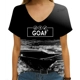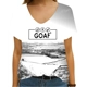 A loose fitting v-neck t-shirt for women, with the GOAF logo on the front and a list of the bands on the back.